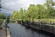 The Volkhov River is navigable within the district; however, there is no passenger navigation. In the beginning of the 19th century, a system of canals bypassing Lake Ladoga were built, which at the time were a part of Mariinsky Water System, connecting the Neva River and the Volga River. In particular, the Syas Canal connects the Syas and the Volkhov. The New Ladoga Canal connects the Volkhov and the Neva. It replaced the Old Ladoga Canal, built by Peter the Great, which thus became disused and decayed. The canals collectively are known as the Ladoga Canal.