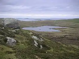 Nuckro Water is a loch of southeastern Whalsay, Shetland Islands, Scotland. It is located to the east of the Loch of Stanefield, northwest of Treawick and southwest of Isbister, and passes by the main road on its eastern side.[1] Also known as Nuckra, Nyker, or Nyuggle, the name comes from the water spirit said to haunt lonely places. There is a disused quarry just to the northeast and the remains of a prehistoric house nearby. On the southeastern side, across the road near the source of Falsa Burn is an unroofed building, which was probably used as a mill; it was shown on the 1st OS map of Orkney and Shetland in 1882.[2] In the southeastern corner of the loch there are stepping stones across the water.