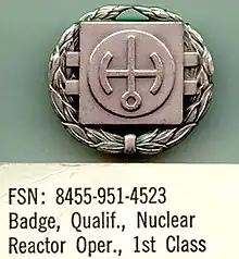 - ↑ Qualification Badges, Nuclear Reactor Operator Badges, The Institute of Heraldry website, last accessed 25 April 2015