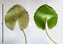 | Nymphaea dimorpha I.M.Turner with scale bar (10 cm) against a white background | |
