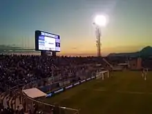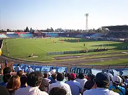 The team qualified for the play-offs after a successful Apertura tournament, where the club finished second in the table, only under U. de Chile.[20] The club had to begin the play-offs by facing Unión La Calera in the quarter-finals.[21] In the first match at La Calera on 24 May, the team won 1–0 with a free kick scored by Ramón Fernández, who did not celebrate the goal as he was planning to leave the club at the conclusion of the season.[22] In Rancagua for the second match, the club clinched a 3–2 victory, thanks to Enzo Gutiérrez, who scored an incredible bicycle kick that defeated keeper Lucas Giovini.[23] In the semi-finals, the club faced Unión Española at Santiago in the first leg, where the club was defeated 1–0 at the Estadio Santa Laura,[24] but won the second match 2–1 with goals of Luis Pedro Figueroa and Rodrigo Rojas, earning a spot in the finals for the first time in its history on the away goals rule, after the 2–2 aggregate score.[25]