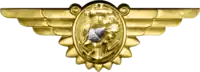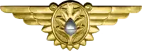 A unique obsolete badge situation occurred with General of the Air Force Henry H. Arnold, who in 1913 was among the 24 Army pilots to receive the first Military Aviator Badge, an eagle bearing Signal Corps flags suspended from a bar.[1] Replaced in 1917 by the more conventional "wings" embroidered design (authorized as an oxidized silver badge in 1921), Arnold displayed both types on his uniform throughout his career. The original Military Aviator Badge design can be seen in pictures of him in uniform.