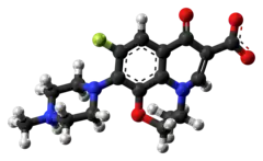 - ↑ Van Bambeke F, Tulkens PM (2009). "Safety profile of the respiratory fluoroquinolone moxifloxacin: comparison with other fluoroquinolones and other antibacterial classes". Drug Safety. 32 (5): 359–378. doi:10.2165/00002018-200932050-00001. PMID 19419232. S2CID 19026852.