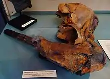 More substantial material was found in the form of three additional specimens, one of which is thought to represent a female O. peruvianus while the other two were described as a second, younger species named O. leptodon. The holotype specimen of O. leptodon is a nearly complete skull with the associated atlas, the topmost of the neck vertebrae. The other specimen of O. leptodon is a much less complete skull, badly weathered and missing the right tusk, but preserving an assortment of postcranial elements such as ribs, vertebrae and a partial forelimb. While the referred O. peruvianus skull was found in the SAS horizon like the type specimen, the new species stems from the SAO horizon, which is slightly younger.[3][4]