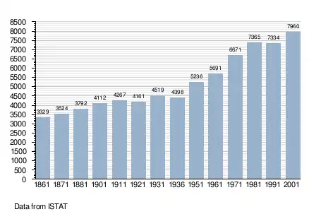 - ↑ "Popolazione Residente al 1° Gennaio 2018". Italian National Institute of Statistics. Retrieved 16 March 2019.