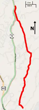 It branches off to the northwest at the point where Gallows Hill Road becomes Sprout Brook Road. From there it takes a west-northwestward, meandering course at first, narrowing almost to one lane at some points and climbing steadily to where the Catskill Aqueduct crosses, but soon bends to the north-northeast and widens. It climbs and then descends over the next two miles (3 km) to the Lake Celeste area, where it becomes more northerly. Then it bends to the northeast again, going up and down several hills through mostly undeveloped areas, to Chapman Road, where the Appalachian Trail crosses.
