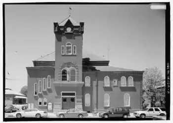The courthouse building, built in 1896, designed in the Richardsonian Romanesque style by the architectural firm of Favrot and Livaudais.[2] A brick clock tower rises above the building.