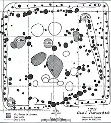 A large number of post molds present in Grid C implied the existence of additional houses, but none could be successfully delineated.[9]
