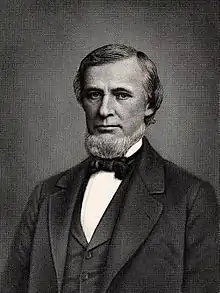 Oliver Ames Jr. served as president of Union Pacific Railroad (UP) while the railroad was busy building the First transcontinental railroad in North America. He was its president pro tem from 1866 until 1868, and was formally elected president of the company on March 12, 1868. He continued as president until March 8, 1871.[5] His tenure was marked by controversy since his 1866 ascent to the presidency was over Thomas C. Durant who had tried to gain the position for himself. Durant filed lawsuits against Ames that stopped construction, and Ames retaliated by garnering support to remove Durant from the railroad's executive committee. A divided board of directors was beyond Ames' management capabilities, and he finally acquiesced to readmitting Durant in 1867, and Crédit Mobilier awarded Ames a new construction contract.[6] In 1873, Ames succeeded his brother as the head of Crédit Mobilier.[5]