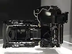 The E-3 has several novel features, including a live preview full articulating screen, autofocus in live view mode, the ability to capture a scene with wide dynamic range using an image processing method called shadow adjustment technology[3] and the ability to control up to three wireless flash groups without external transmitters. The camera is also fully weatherproof even with the popup flash in the "up" position.