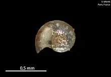 | Shell of Omalogyra zebrina (paratype at MNHN, Paris) | |