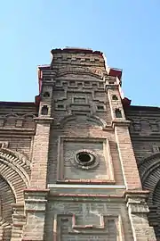 The minaret of the mosque, also built of burnt bricks, has a rounded shape. Its height is 14 m.[5] The brick patterns of the minaret, which is part of the main complex of the mosque, emphasize the skill of the master.