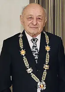 Omar Hasan oglu Eldarov (Azerbaijani: Ömər Həsən oğlu Eldarov) is an Azerbaijani monumentalist sculptor, Honoured Art Worker of Azerbaijan (1962), People's Artist of Azerbaijan (1982), full member of the National Academy of Sciences of Azerbaijan (2001), full member of the Russian Academy of Arts (1988), president of Azerbaijan State Academy of Fine Arts (2001), and academician.[1]