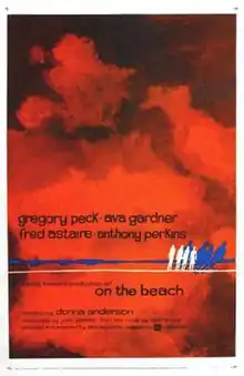 On the Beach is a 1959 American post-apocalyptic science fiction drama film from United Artists starring Gregory Peck, Ava Gardner, Fred Astaire, and Anthony Perkins. Produced and directed by Stanley Kramer,[2] it is based on Nevil Shute's 1957 novel On the Beach depicting the aftermath of a nuclear war.[3] Unlike the novel, no one is assigned blame for starting the war, which attributes global annihilation to fear compounded by accident or misjudgment.