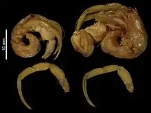Oncopagurus, is a genus of marine hermit crabs in the family Parapaguridae, which contains 25 species.[1] Members of this genus live from 40 to 2,308 meters below the surface.[2]