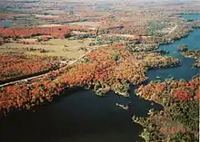 Highway 35 north of Coboconk, showcasing the fall display. Shadow and Silver lakes are visible.