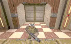 Operation Bayshield was the first machinima work to incorporate custom digital assets.[7] Clan Undead created graphical textures specifically for their characters and used custom visual effects, such as manipulating character images to produce first instance of lip synchronization in machinima.[5] Although the effect was primitive, it was not used again in machinima for another year.[3] This lip synchronization is an example of crude digital puppetry; other examples included the shaking of character bodies when laughing and synchronized delivery of dialogue.[5] Lowood believes that Clan Undead pre-recorded individual lines of dialogue to WAV files, and then triggered playback through a command in QuakeC.[8] In April 1997, Clan Undead distributed the source code for its Operation Bayshield scripts over the Internet; Lowood believes that this release extended the Quake community's culture of sharing game modifications.[5]