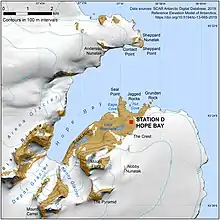 Base D, Hope Bay [67][79][77][1] – British Antarctic Survey – Operation Tabarin List of personnel}}