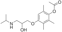 Metipranolol (OptiPranolol, Betanol, Disorat, Trimepranol) is a non-selective beta blocker used in eye drops to treat glaucoma. It is rapidly metabolized into desacetylmetipranolol.[1]
