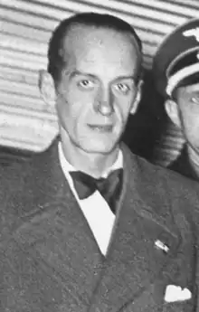 The son of Giovanni Bonomi and Angela Penagini, he worked as a merchant and accountant, and was President of the national federation of traders. In the early 1920s he was a squadrista in Milan and participated in the march on Rome.[1] In 1934 he was elected to the Italian Chamber of Deputies with the National Fascist Party and in 1939 he became a member of the Chamber of Fasces and Corporations.[2] Among his offices were that of Director General of Tourism and Deputy Commissioner for the 1942 World Exhibition in Rome.[3][4][5][6][7] During the Second Italo-Ethiopian War he flew as a bomber pilot for the Regia Aeronautica, participating in the battles of Shire, Tembien and Amba Aradam, as well as in a demonstrative flight over Addis Ababa, and being awarded a Silver Medal of Military Valor.[8] After the outbreak of the Second World War, he again participated in bombing missions in North Africa and the Mediterranean, earning a Bronze Medal of Military Valor.[9] From 6 February to 25 July 1943 he was Minister of Exchanges and Currencies during the last phase of the Mussolini Cabinet.[10][2][11][12] After the fall of the Fascist regime and the German occupation of Italy he fled to Switzerland.[13]