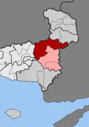 Orfeas (Greek: Ορφέας), named after the mythical musician Orpheus, is a former municipality in the Evros regional unit, East Macedonia and Thrace, Greece. Since the 2011 local government reform it is part of the municipality Soufli, of which it is a municipal unit.[2] Its land area is 643.266 km2 (248.366 sq mi)[3] and its population was 4,761 inhabitants at the 2011 census. It is located in the north-central part of Evros, and borders both southeastern Bulgaria and northwestern Turkey. The seat of the municipality was in Lavara (pop. 1,093 in 2011). Much of the land is mountainous and forested to the west, extending up to the Rhodope regional unit. It is linked with GR-51 (Alexandroupoli – Orestiada – Edirne in Turkey and Svilengrad in Bulgaria). The town of Lávara sits on a plain. It is located SE of Svilengrad, S of Edirne, Turkey and Orestiada, and 13 km N of Soufli and 78 km N of Alexandroupoli. The municipality's next largest towns are Agriani, Mega Dereio and Amorio.