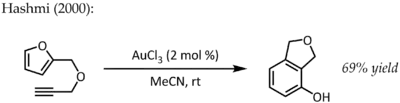 - ↑ Hashmi, A. S. K.; Frost, T. M.; Bats, J. W. (2000). "Highly Selective Gold-Catalyzed Arene Synthesis". Journal of the American Chemical Society. 122 (46): 11553–11554. doi:10.1021/ja005570d.