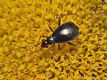 The sexes are dimorphic. Females are brachypterous and show short hemielytrae, while males look like a typical mirid bug. In fact, they are fully winged (macropterous), with an elongated parallel-sided body. The nymphs are light red.[2]