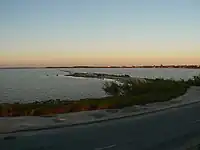 Oso Bay is a bay bordered by Corpus Christi, Texas. The bay is fed freshwater by Oso Creek and saltwater from Corpus Christi Bay. The Hans and Pat Suter Wildlife Refuge is located on the bay's western shore near the Pharaoh Valley subdivision, Naval Air Station Corpus Christi is located on its eastern shore in Flour Bluff, newly created Skimmer Key is located between the Oso Bay Bridge and the Naval Air Station, and Texas A&M University - Corpus Christi on Ward Island is located on the northern shore of Oso Bay. On the bay’s southwestern shore is the Oso Bay Wetlands Preserve.