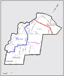 Following the 2003 redistribution, the riding's eastern boundary was changed to Highway 417 from the former city limits. The boundary would follow Highway 417 from the Rideau River until Hunt Club Road. This shift added in a small piece of territory that was in Ottawa—Vanier and Ottawa—Orléans riding.