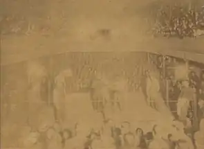 In January 1900 Cribb beat Harry Dawson in five minutes in a fight at the Golden Gate Club attended by 800 spectators, who were disappointed at the noncompetitive fight.[17] After the fight he expressed the wish to box in Melbourne,[18] but in February he boxed in Sydney again against Ned Burden at the Golden Gate club[19] winning quickly[20] in front of a crowd of 1,000.[21] In March he fought Victorian light-weight Tot Higgins in Sydney,[22] and won in thirteen rounds in what was described as his best performance yet in front of a crowd of 2,000.[23] In April he beat Jack Broughton at the Gaiety Theatre[24] in front of 500 people and the match was harshly criticized due to Broughton's lack of competitiveness, and it was suggested it may even kill the Sydney boxing boom.[25]
