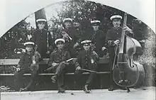 It was normal practice for bands such as Schwarz's to be resident all summer in one town, but to take extra bookings in nearby locations.[3] On 16 August 1904. Schwarz and his band provided the music for the annual dinner of the United Billposters' Association, at the Crown Hotel, Harrogate.[8] On 23 June 1906 at the Wells House Hotel and Winter Gardens, Ilkley, Schwarz and his band were one of several playing at the hotel's 50th anniversary celebrations.[9] In 1907 the band – described as the "Blue Bavarian Band" – performed "A brief, though artistically-rendered programme" at the Queen's Hall, Otley. They were on their way to Blackpool, where Schwarz's father used to perform.[10] On 30 March 1908, the Bavarian String Band performed at the Queen's Hall, Otley: the march from Tannhäuser, a Suppé overture, a Strauss waltz, The Gondoliers, Troop March by Lutz, and a fantasia from Lohengrin.[11] Monday 28 March 1910 was a day of "glorious weather", in which bands and other entertainments played across Harrogate, to attract visitors at the spa. Those on Prospect Hill in daytime, and at the Kursaal in the evening, were "regaled by Otto Schwarz's Bavarian Band".[12] On 28 July 1904 and 3 August 1912, Schwarz and his band provided the music at the annual sports day of Clifton College, Harrogate, on Harrogate Cricket Ground, in front of a "large and fashionable assemblage of spectators".[13][14]
