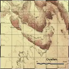 Ouallene or Ouallen is a desert town and bordj in southern Algeria. The village is located in the Adrar Province to the southeast of Reggane. The bordj sits at an elevation of about 346 m (1,135 ft) above sea level and lies in the heart of the Tanezrouft, one of the hottest and driest regions in the Sahara Desert, the world's largest hot desert.