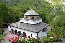 - Holy Trinity (Sveta Trojica), a secluded monastery on the hill across Blagoveštenje. It was mentioned for the first time in the Ottoman documents from 1572. Architectonically, Sveta Trojica is considered to be the most beautiful of all the Ovčar-Kablar monasteries.[7]