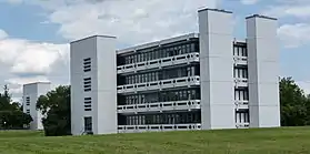 Entrance to lecture hall building containing HS1, the largest lecture hall of the university