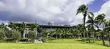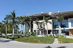 With their raised, wraparound terraces and broad overhanging canopies, the houses are conceived to withstand hurricanes and floods, while providing ample shade and ventilation. The museum also incorporates a series of hanging vertical gardens made from local plants and vegetation, designed by French botanist Patrick Blanc.[16] Blanc experimented with different kinds of species throughout the years and the gardens now comprise 80 kinds of plants which are supposed to survive subtropical heat as well as hurricanes. According to Christine Binswanger, the project architect, the plants provide a transition for visitors entering from the outdoors.[17] The new PAMM building opened in December 2013, and the Miami Science Museum building opened in May 2017.[18]