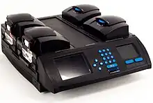 The thermal cycler (also known as a thermocycler, PCR machine or DNA amplifier) is a laboratory apparatus most commonly used to amplify segments of DNA via the polymerase chain reaction (PCR).[1] Thermal cyclers may also be used in laboratories to facilitate other temperature-sensitive reactions, including restriction enzyme digestion or rapid diagnostics.[2] The device has a thermal block with holes where tubes holding the reaction mixtures can be inserted. The cycler then raises and lowers the temperature of the block in discrete, pre-programmed steps.