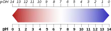 In chemistry, pH (/piːˈeɪtʃ/ pee-AYCH), also referred to as acidity or basicity, historically denotes "potential of hydrogen" (or "power of hydrogen").[1] It is a scale used to specify the acidity or basicity of an aqueous solution. Acidic solutions (solutions with higher concentrations of hydrogen (H+) ions) are measured to have lower pH values than basic or alkaline solutions.
