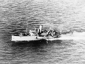 Although retained on the Isle of Wight ferry route at the outbreak of the Second World War, at the end of May 1940 she was requisitioned by the Admiralty and took part in the Dunkirk evacuation; although she only made one trip she brought back 2,700 men. After resuming ferry services, she was requisitioned again in 1941 as a minesweeper and converted to an anti-aircraft ship in the following year.[3] She provided cover for convoys assembling in Largs Bay on the Firth of Clyde and later supported the Normandy landings in 1944.[4] She returned to railway use in 1946. On 31 July 1947 she collided with the 28-ton yawl Ariette, which was preparing to take part in the Royal Thames Yacht Club regatta off the pier head at Ryde.[5] The yacht was lifted out of the sea and the crew was thrown about the deck, but no one was seriously injured, although damage to the yacht was estimated at £3,000.