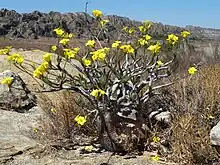 Elephant's foot in flower in Isalo N. P., Madagascar