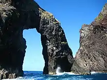 Immediately off the northern east coast are the very small and steep rock islets Togari Rock (0.6 hectares (1.5 acres), 94 metres (308 ft) high) and Hira Rock (0.25 hectares (0.62 acres)), which are listed as separate islands among those islands constituting the Northern Islands Municipality.[12]