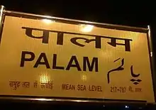 - ↑ "PM/Palam (3 PFs) Railway Station - Train Departure Timings - India Rail Info". India Rail Info. Retrieved 1 July 2016.