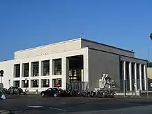 La Palazzina Reale of Santa Maria Novella is a modern, white marble palace built in a sleek Fascist-style, located along via Valfonda and Via Berardi, adjacent to the main Train Station at Santa Maria Novella in Florence, region of Tuscany, Italy. Built in 1934-1935 to house the royal family on their visits to Florence; after recent refurbishment, the building since 2015 houses the Casa dell'Architettura di Firenze (Architecture Society of Florence).