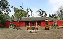 Liu Bei had a shrine and tomb constructed for Pang Tong near Luo County. The shrine and tomb is located in present-day Baimaguan Town (白馬關鎮), Luojiang County, Sichuan. On 25 May 2006, it became a Major Historical and Cultural Site Protected at the National Level.[3]