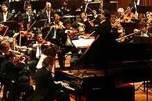 During his almost thirty-year international concert career, his own solo-participations with European, Americaa and Australian orchestras are innumerable. Among the conductors: Roberto Abbado, Gerd Albrecht, Piero Bellugi, Christian Benda, Yoram David, Vladimir Delman, Claus Peter Flor, Heiko Mathias Forster, Lu Jia, Lothar Koenigs, Gerard Korsten, Julian Kavatchev, Gustav Kuhn, Uroš Lajovic, Yoel Levi, John Nelson, John Neschling, Gunter Neuhold, Daniel Oren, Massimo Pradella, Donato Renzetti. Under the baton of Riccardo Muti he appeared in June 2004 with Orchestra Filarmonica della Scala in Liszt's Second Piano Concerto and, in 2008, again conducted by Muti, he was soloist in the symphonic production of Lélio ou Le Retour à la Vie op. 14b by Berlioz together with Gérard Depardieu, the Orchestra Luigi Cherubini, Orchestra Giovanile Italiana, Konzertvereinigung Wiener Staatsopernchor.