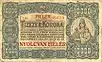 | 1 korona | 129 × 65 mm | Female model | Value in Hungarian and 5 foreign languages | 11 July 1921 | 30 June 1927 | ||