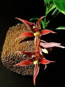 Paphinia, abbreviated in horticultural trade Pna, is a genus of orchids, composed of an estimated 16 species from Central America, northern South America and Trinidad.[1][2] These species are medium-sized epiphytes with small ovoid pseudobulbs and 2 or more leaves. The generic name comes from the Greek Paphia, the name of Aphrodite of Cyprus.[3] Most authorities consider the genus rare.