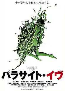 Parasite Eve (Japanese: パラサイト・イヴ, Hepburn: Parasaito Ivu) is a 1997 Japanese science fiction film that was directed by Masayuki Ochiai and is based on the 1995 novel Parasite Eve by Hideaki Sena. Kiyomi (Riona Hazuki), the wife of Toshiaki Nagashima (Hiroshi Mikami), is left brain dead after a traffic accident on the day of their first wedding anniversary. Nagashima attempts to make Kiyomi live again by making a deal with a doctor who wants to harvest Kiyomi's kidneys for transplanting into a young girl in the same hospital. Nagashima agrees on the condition that he can have his wife's liver. While Nagashima experiments with the organ, the doctor finds one night the samples have emerged as a gelatinous form in the form of Toshiaki's dead wife and reveal themselves as an organization of sentient mitochondria that are bent on making a new species that will wipe out humanity.