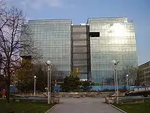Park One is an office building at Kollárovo Square in Bratislava, capital of Slovakia, across the street from the New Scene Theatre. The building contains offices at the upper floors and shops and a restaurant at the ground floor.
