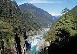 Parlung Tsangpo or Parlung Zangbo[1] (Tibetan: ཕར་ལུང་གཙང་པོ, Wylie: phar lung gtsang po; Chinese: 帕隆藏布; pinyin: Pàlóng Zàngbù), also known as Palongzangbu River,[2] is a river in Nyingchi, Tibet, China. It is the largest tributary on the left side of Yarlung Tsangpo. Its source is the Arza Gongla Glacier, at an elevation of 4900m. It first flows north into Ngagung Tso, then turn northwest to Rakwa Tso. It joins Yarlung Tsangpo near Bomê.