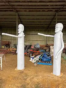 With funding from the Department of Energy, Environment and Climate Action (DEECA) the old heads were used templates to make replicas from Cypress Pine in mid-2022 by well-known wood carver John Brady from Fulham near Sale.[1]
